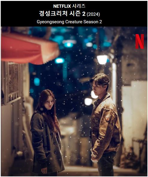 마지막으로 소개할 작품은 <경성크리처 시즌2>입니다. 2024년 3분기 공개 예정인 이 작품은 일제강점기에서 78년 후인 2024년 서울을 배경으로 합니다. 첫 번째 이야기의 인물인 태상(박서준)과 닮은 호재(박서준), 그리고 경성의 봄을 살아낸 채옥(한소희)의 인연과 운명을 다루고 있습니다.
