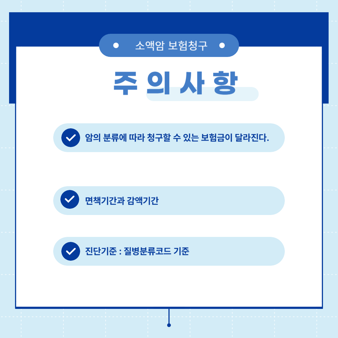 소액암 진단비 보험금 청구 시 몇 가지 주의해야 할 사항이 있습니다.