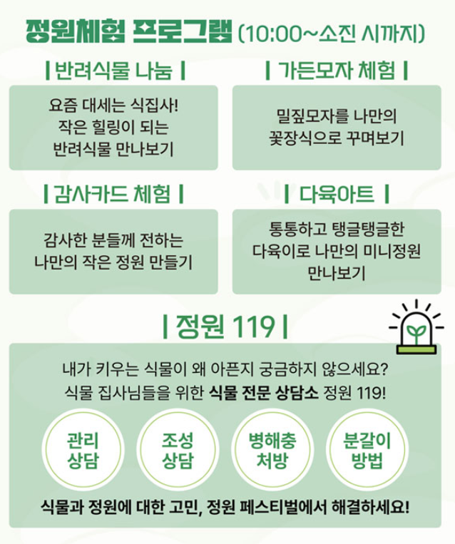 - 정원 119 : 식물 관리에 대한 상담부터 병해충 처방까지, 식물과 정원에 대한 모든 궁금증을 해결해 드려요.