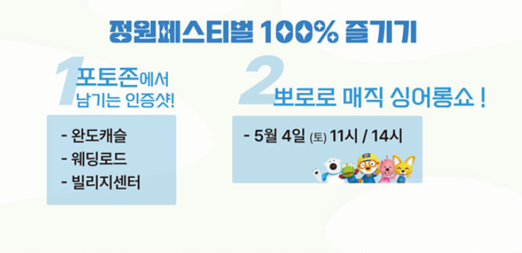 - 5월 4일에는 어린이들을 위한 뽀로로 매직 싱어롱쇼도 준비되어 있어요. 가족 단위 방문객들에게 더할 나위 없이 좋은 추억을 선사할 거예요.