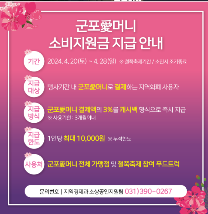 - 문의사항은 군포시 문화관광팀으로 문의해 주시면 자세한 정보를 안내해 드립니다. 전화번호는 031-390-3555입니다.