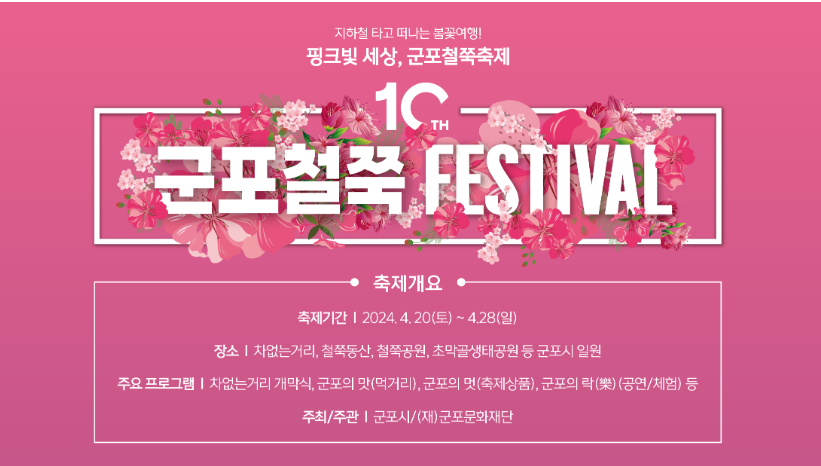 봄바람이 불어오는 계절, 경기도 군포에서는 매년 봄마다 열리는 특별한 축제가 있습니다. 바로 군포철쭉축제인데요. 이번에는 어떤 재미있는 프로그램과 이벤트가 기다리고 있는지 한번 살펴볼께요!