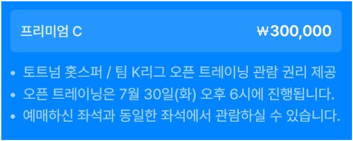 토트넘 홋스퍼 vs 팀k리그 경기 티켓 예매 가격 좌석