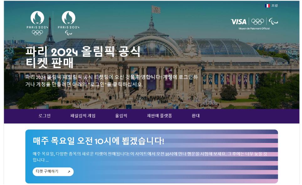 파리올림픽 티켓은 공식 웹사이트에서 구매할 수 있습니다. 웹사이트에 가입하고 로그인 후 결제하면 되며, 프랑스어보다는 영어로 번역해 사용하는 것이 더 매끄럽습니다. 매주 목요일 오전 10시에 새로운 티켓이 오픈되니 참고하시기 바랍니다.