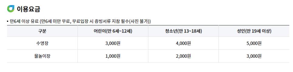 - 특징 : 유수풀, 아쿠아링 등 다양한 놀이기구